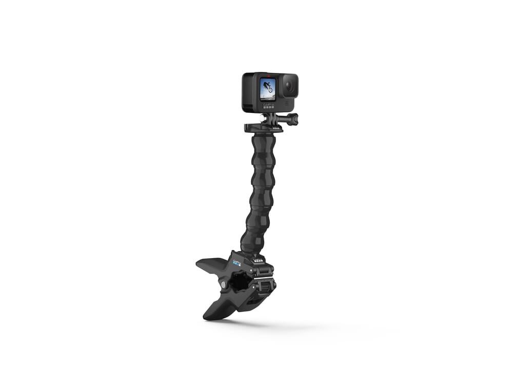Jaws er en klemme som gjør at du kan feste ditt GoPro kamera til alt som er mellom 0.6 og 5cm i diameter. Kameraet kan festes direkte i klemmen for lavprofil montering, eller på toppen av den medfølgende halsen for å få et bredere spekter av mulighter for kameravinkler. Jaws holder seg fast til gjenstander med ujevn fasong, samt svært tynne gjenstander takket være sin innovative design.