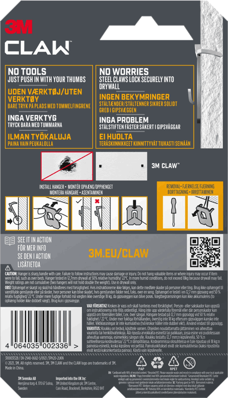 3M Claw, Kroker for Gipsplater, holder 20 kg, 2 kroker