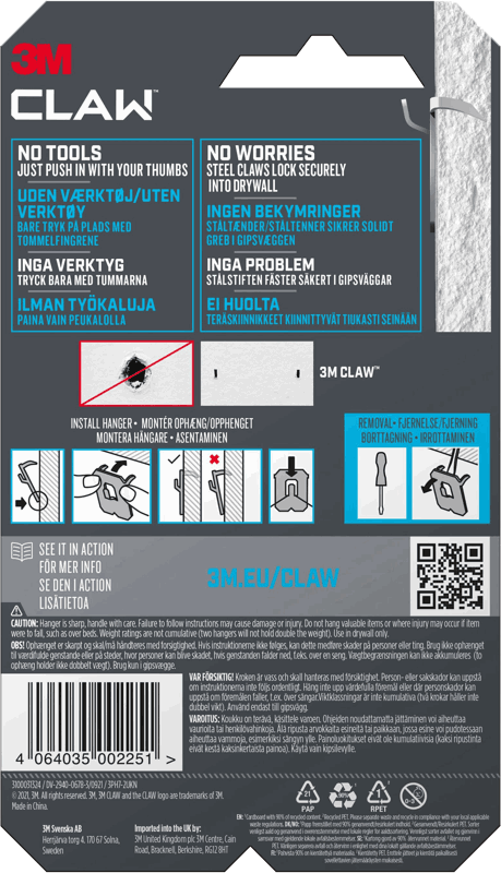 3M Claw, Kroker for Gipsplater, holder 7 kg, 2 kroker