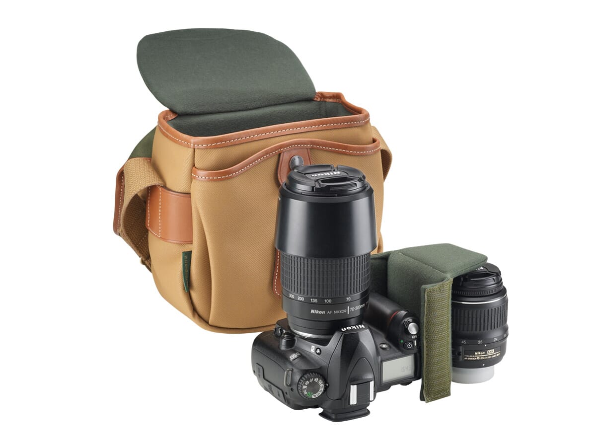 Passer til to små kameraer eller et mellomstort DSLR med et lite eller mellomstort objektiv påmontert.
